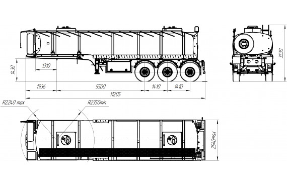 | Максимальная масса снаряженного полуприцепа-цистерны, кг | 11 500 |