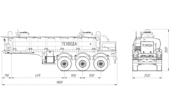 20000 литров, прямое сечение, шины 425/85R21/6+1, рессорная или пневматическая подвеска. дополнительная опция: мотопомпа.