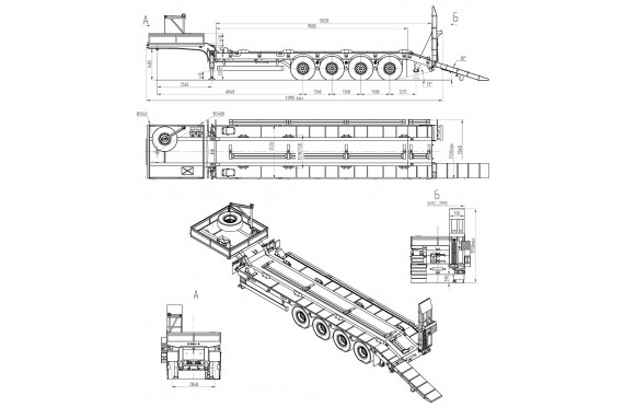 50000 кг, шины 385/65R22,5 или 445/65R22,5/ 6+1, присавные алюминиевые трапы, платформа 12200 мм, ССУ 1450 мм, пневматическая подвеска, раздвижные коники 1500 мм, съемные борта или без них, в ГАБАРИТЕ по ДЛИНЕ АВТОПОЕЗДА с КАМАЗ 6x6