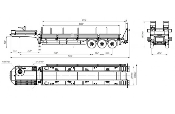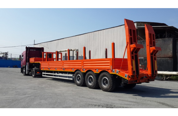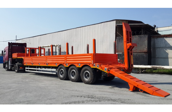 45000 кг, шины 445/65R22,5 или 395/85R20 / 6+1, платформа 10300 (11080 до трапов) x 2500 с уширителями до 3000 мм, механические трапы, ССУ 1510 мм, рессорная подвеска, съемные стойки 1500 мм