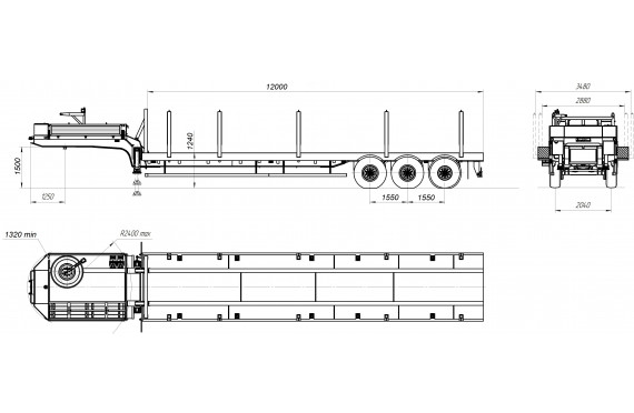 | Максимальная масса снаряженного полуприцепа, кг | 12500 |