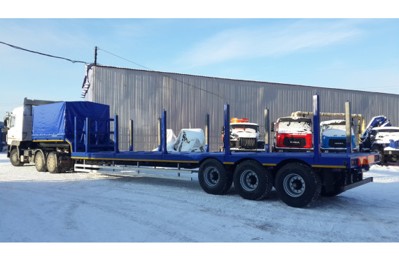 47000 кг, шины 445/65R22.5 или 395/85R20 / 6+1, платформа 9300 (10300 до трапов) x 2500 с уширителями до 3000 мм, механические трапы, пневматическая подвеска, съемные стойки 1500 мм